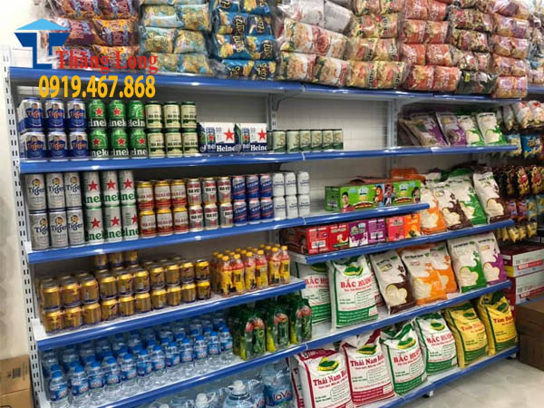 - Sử dụng giá kệ để hàng tạp hóa để dễ dàng phân loại và sắp xếp hàng hóa chuyên nghiệp hiện đại hơn